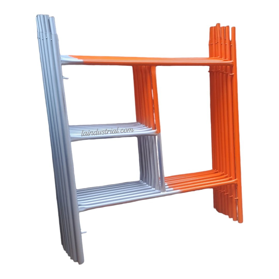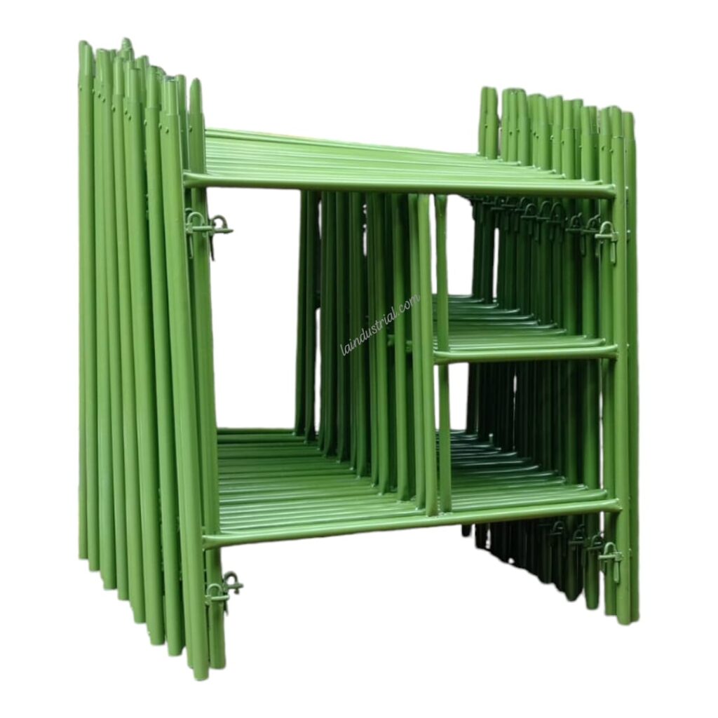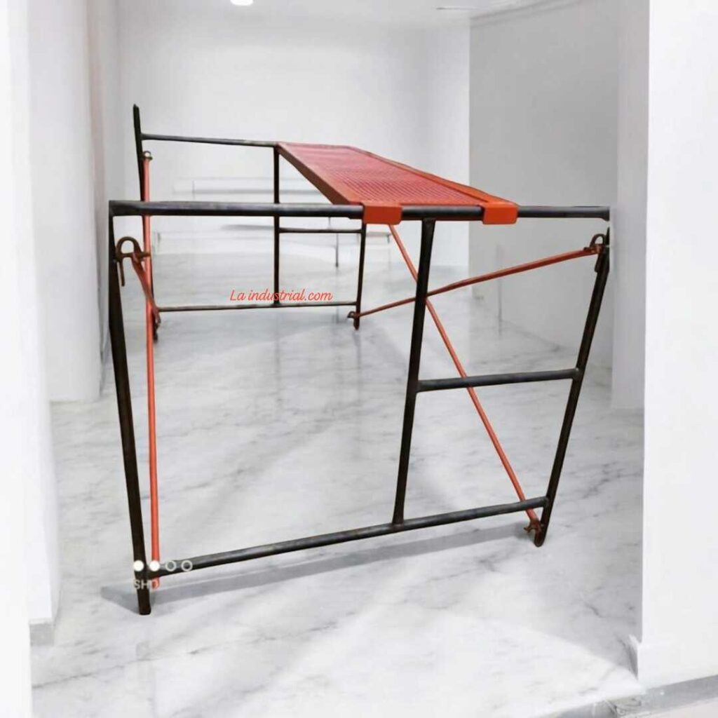 Esta conformada por una estructura modular formada por dos marcos y dos crucetas, está diseñado para ser utilizado como plataforma de trabajo y no de carga; su acceso puede ser interno o externo, y se puede trabajar sobre una plataforma o simplemente sobre un tablón de madera dependiendo de las necesidades. En el comercio es muy usado por su bajo costo y funcionalidad. Este diseño facilita la labor de armado, transporte y almacenamiento, permite trabajar por seguridad máximo 10 secciones o cuerpos debidamente asegurados o amarrados, según el lugar o terreno donde se va ha desarrollar el trabajo.